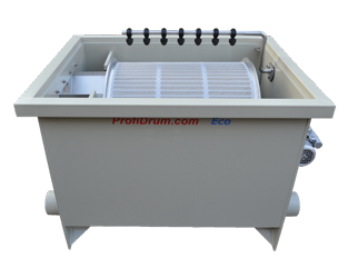 ![]() ProfiDrum Eco Rotary Drum Pre-Filter The ProfiDrum Eco is positioned for the professional hobbyist who does not opt for a stainless steel system but will not sacrifice the durability and reliability of his or her investment. Therefore, the critical components are (just like the ProfiDrum Stainless) made of stainless steel 316. The housing of the ProfiDrum Eco is created with economical PolyProylene (PP). The filters are covered with industrial filter panels with a woven stainless steel mesh of 70 microns. On request, different mesh sizes are certainly possible as well as nylon mesh. The ProfiDrum Eco electronic control box along with the drum motor operate on 110v current.