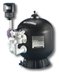 ![]() Pinnacle 140: Maximum flow, minimal cost Challenger Filters - Pushing the Envelope. Taking the Trademark design of the Challenger 140 to the next level, the Pinnacle 140 evokes and image of superiority and simplicity through it's unmistakable new styling. Built to suit the needs of pond owners who require massive flow rates, the Pinnacle filter supports dual 1/4 HP pumps, and flow rates up to 10,000 gallons per hour. The use of 2 1/4 HP pumps allows maximum flow coupled with minimum energy consumption. A single air blower is provided as standard equiptment on the Pinnacle 140. Used to break apart the bead pack that forms in the 140 the blower is an invaluable tool for backwash assistance. With the addition of features such as the Hydraswirl Media Prop, and a sludge removal drain, the Pinnacle filter is clearly the apex of high flow bead filter systems.