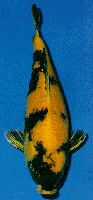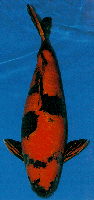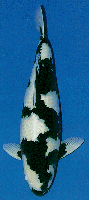 Utsurimono Utsurimono literally translates as "reflections" or "reflecting ones". This category is made up of three different color varieties. The first and foremost is the Shiro (white) Utsuri. The second variety is the Hi (fire or red) Utsuri. The third and most elusive is the Ki (yellow) Utsuri. All three color variations are accentuated by a sumi (black) base which emerges from under the white, red, or yellow field to create a pattern that suggests the "reflection" of color on a black background. The following article was written by Joel Burkard/Pan Intercorp and previously published in PONDSCAPES magazine All rights reserved Joel Burkard/Pan Intercorp 1995 General Points of Reference Moto Guro: literally "basic black", an Utsurimono should have sumi (black) at the mouth or nose, at the base of both pectoral fins, and at the base of the tail. Sumi: Because the Utsurimono are considered to be basically black koi, the strength and quality of the black is very important. This does not necessarily mean that there has to be a lot of black but the strength of the sumi is a key point in judging these koi. Menware: Literally "broken mask", it is considered an added asset if an Utsurimono or Showa has a bolt of sumi running down the face at an angle between the eyes, however, lack of this feature is not a demerit. The clearer the field is the more beautiful the koi will be. Shimi or black freckle-like specks in the field will detract from the overall appearance. Remember that the above are merely guidelines to selection. Beauty is in the eye of the beholder, and any koi that conforms to all of the guidelines may cost many thousands of dollars. BACK TO TOP ![]() |