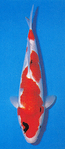 Mr. Kawakami entered his Showa in several hobbyist koi shows in 1998, but it never placed higher than Runner Up. Dismayed at the various judges indifference to a koi that he thought was exceptional, Mr. Kawakami had all but decided not to enter it in any more shows. Fortunately for all, a dealer who happened to stop by and see the koi convinced Mr. Kawakami to enter it in the 31st All Japan Show in January of 1999. Much to his surprise, it not only took 1st Place Showa Size 55 and Best in Size 55, but it also beat two much larger koi to win the Kokugyo Prize of Adult Champion. Pictured here in all it's splendor, this Showa has everything that is sought after in this variety and more: