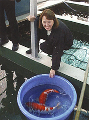 Just as horses are often boarded with the breeder or trainer here in the United States, koi are often boarded with koi dealers and breeders in Japan. Horses are boarded with horse trainers in the hopes of having the trainer help the horse achieve their full potential, whether it be in the arena or on the race track. There can be a number of reasons for boarding koi with a professional facility, but most commonly, one would board their koi with a breeder in the hopes that the superior experience, care and environment provided by the breeder, would give their koi the best chance of reaching it’s full potential. The Grand Champion of the 2005 All Japan Combined Koi Show is an excellent example of why one would want to board a koi with a breeder on an ongoing basis. Ultimately, the arrangement benefits both the breeder and the owner. The owner is assured that their koi will receive the highest level of care and attention and that their koi will have the optimum environment for growth, and finishing. As a matter of fact, a breeder will often agree to sell some of his most promising tategoi if he knows that the buyer will continue to board their purchase at the breeder’s farm. The breeder benefits by being able to witness, on a continuing basis, the growth and development of a high quality koi that he has bred. This can provide invaluable insight into refining and developing his bloodline. Occasionally, a breeder will ask a client’s permission to use a particularly high quality (or high profile) azukarigoi in the farm’s breeding program. There is no fixed and fast rule in these cases, but the client is often given “pick of the litter” in return for their participation. Some breeders have even been known to buy back azukarigoi from their clients for use as brood stock.