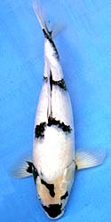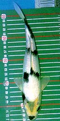 In the middle of August I had the opportunity to visit the actual pond in Kashiwazaki, Niigata where my koi were growing along with 120 other yearlings. The pond was about an acre in size and the water was truly muddy. When the koi were given their 5:00am feeding the water literally boiled with kohaku, making it impossible to identify any single koi with the exception of one that had lost all it's red. Two months and many a daydream later, I received the long awaited call. The good news was that both of the koi had been harvested in excellent condition. The kohaku had grown to an impressive 18 inches and the Shiro Utsuri was now 17 inches. The other news was that it was now apparent that my original suspicions were correct and my female kohaku was now a male. Such is the joy of Tategoi.