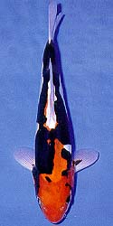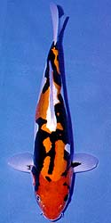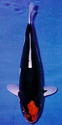 The unique qualities of this koi created quite a lot of interest at the show, resulting in a number of persons vying for ultimate ownership. The koi subsequently vanished from public view, only to resurface three months later at the 28th All Japan Show, entered by Dr. Noboru Yamamoto, from Shinjuku in Tokyo. Many of you who have traveled to Japan are probably familiar with the Shinjuku district of Tokyo. Besides being the major hub for rail transportation throughout Japan, it is also affectionately referred to as Sin-juku or Sin City, famous for it's colorful night life. All that has absolutely nothing to do with koi, but what it does mean, is that space is at an absolute premium in Shinjuku, and to find a place to build a koi pond requires either extreme ingenuity or millions of dollars. The only space available for a koi pond at Dr. Yamamoto's residence was an area barely large enough to park a car. (Parking spaces in Shinjuku rent for over $1,000.00 per month!) In order to have his koi housed comfortably in an adequate facility, Dr. Yamamoto wanted to have a 13,000 gallon pond, a size that was unheard of in the heart of Tokyo. Dr. Yamamoto solved his problem by excavating in such a way that 80% of his 13,200 gallon pond lies under his house! It is in this semi-subterranean koi pond, that Dr. Yamamoto has kept this Kawarigoi over the last several years. Due to the Kumonryu parentage, and perhaps accelerated by the unique pond conditions that it is kept in, this Kawarigoi has changed radically in a relatively short period of time. When I first saw it at the Agriculture Show in Ojiya, its beni (red) was a soft persimmon color - so close to orange as to earn it the name "Halloween Koi" from some American visitors from Oregon. Over time, the beni has developed into the deep Showa red that it has today. In true Kumonryu fashion, the sumi (black) continues to develop totally out of control, without rhyme nor reason. In its present state, the sumi threatens to overrun the entire body, raising the possibility of a brief career as a Karasugoi!* To date, this koi has a perfect record. It has taken top honors in its class in every show it has ever been entered in, and Dr. Yamamoto assures me that he still considers his Kawarigoi to be a Tategoi, and that this is one Tategoi that he definitely won't be letting go of! *Karasugoi: Also referred to as simply Karasu. A koi that is entirely black when viewed from the top. (It can have a white, gold, red, orange or yellow belly.) Usually a fully scaled koi. Sometimes referred to as a Crow in the english language.