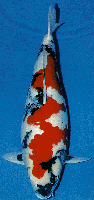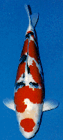 "Koi as a Hobby: Different Strokes for Different Folks" Nishikigoi, or koi, are recognized as the national fish of Japan. Hundreds of years ago in the mountains of Niigata, the farmers in the village of Yamakoshi, noticed a red carp swimming among the black carp that they raised to supplement their diet of rice and vegetables. Through years of selective breeding, Japanese koi breeders have created the hundreds of named varieties of koi that we see today. The recent proliferation of garden ponds in the America has catapulted the hobby of koi keeping from virtual obscurity, into center stage USA. As Nishikigoi were developed in Japan, the language of koi is Japanese. Japanese terms are used not only to name the varieties, but also for many of the terms used to describe their colors and traits. Whenever we discuss koi varieties, the list inevitably begins with the Kohaku which is a white koi with red markings. Kohaku come in literally thousands of patterns with no two koi the same but some of the more recognized patterns are as follow: